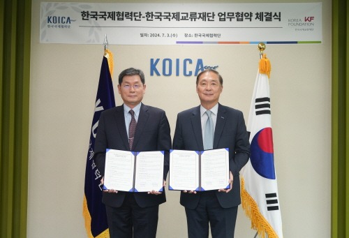코이카는 3일 오전 경기도 성남시 코이카 본부에서 한국국제교류재단과 ‘국제개발협력과 공공외교 분야 간 협업’을 위한 업무협약(MOU)을 체결했다. 이번 MOU는 2022년 체결한 기존 업무협약 기한이 5월 만료됨에 따른 갱신 체결이다.