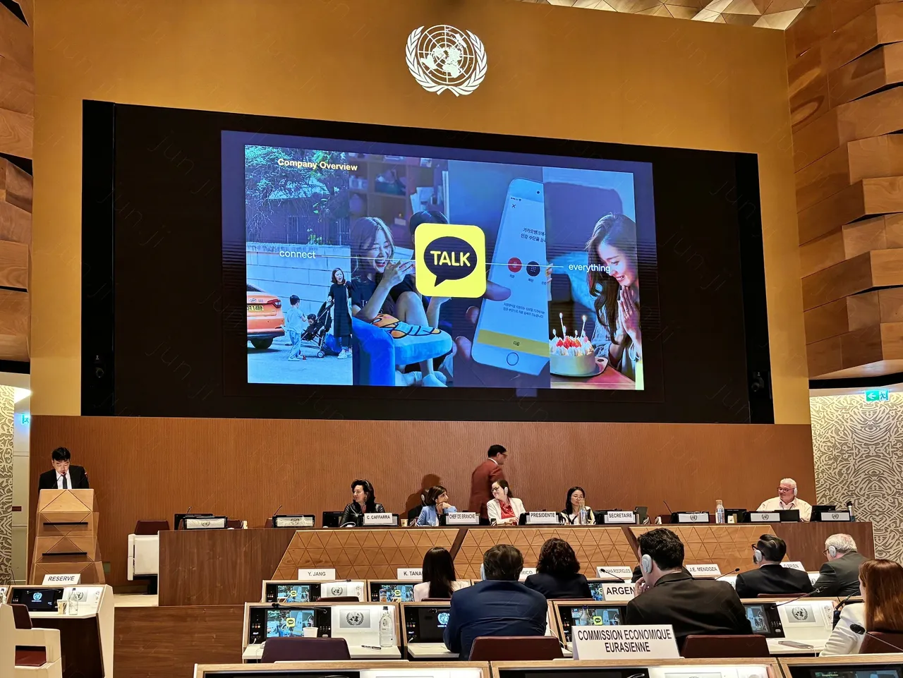 카카오가 UN 회의에 참석해 디지털 플랫폼의 상생 및 건전한 경쟁과 방향성에 대해 발표했다.