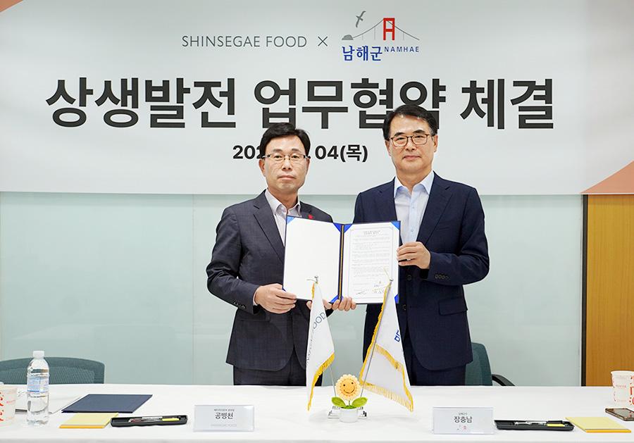 이날 체결식에는 신세계푸드 공병천 베이커리 본부장, 남해군 장충남 군수 등 20여명이 참석한 가운데 양사는 상호간 상생 발전을 위한 교류와 협력을 강화하고 공동 홍보 및 마케팅 활동으로 남해군의 지역 특산물의 인지도 제고 및 제품의 브랜드 가치 향상을 위해 힘을 모으기로 했다. 특히 신세계푸드는 이번 협약을 기점으로 전국 이마트 내 베이커리 매장과 이마트 트레이더스 내 베이커리 등에서 남해군을 대표하는 농특산품인 마늘 유통 확대를 위해 이를 원재료로 사용한 베이커리 제품 개발에 나선다는 계획이다.