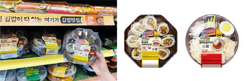 ‘큰길-햄&잡채반반튀김김밥’은 튀김김밥과 김말이를 벤치마킹해 햄&잡채 반반튀김김밥으로 개발됐으며,’먹잘알(먹는걸 잘 알고 먹는 사람의 줄임말) 들이 김밥을 먹을 때 떡볶이 소스에 찍어먹는 것에 착안해 김밥 용기 안에 튀김김밥을 찍어먹을 수 있는 떡볶이 소스도 함께 제공된다. ‘열무비빔국수’는 여름시즌 고객들의 최애 메뉴로 열무김치와 새콤달콤한 비빔면을 상품화했다. 가격은 각각 3,700원, 4,500원이다.