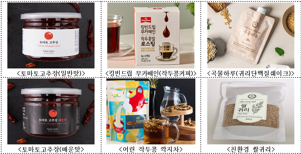 - 토마토고추장, 작두콩커피, 친환경쌀귀리 등 6개 제품