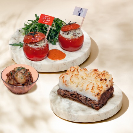 서울 강남구 삼성동 ‘유아왓유잇’ 코엑스점에서 선보이는 프렌치 대안식 신메뉴는 ‘토마토 파르시’, ‘아쉬 파르망티에’ 등 2종이다. ‘토마토 파르시’는 속을 파낸 토마토 안에 식물성 다짐육, 양파, 마늘, 파낸 토마토 등을 볶아 채운 요리로 조리방법이 간단한데도 모양이 예뻐 홈파티 메뉴로 주로 쓰인다. 특히 올리브유에 양파와 감자를 볶아낸 프랑스 리옹 지방의 감자요리 ‘뽐 쏘떼 아 라 리오네즈’와 잘 어울려 사이드 메뉴로 함께 제공된다. 프랑스어로 ‘잘게 다진 감자요리’라는 뜻의 ‘아쉬 파르망티에’는 대표적인 프랑스 가정식 요리다. ‘유아왓유잇’ 코엑스점에서는 고기 대신 식물성 다짐육과 당근, 버섯, 양파 등 채소 위에 가루쌀로 만든 식물성 음료 ‘유아왓유잇 라이스 베이스드’를 넣어 만든 매쉬드 포테이토를 얹고 오븐에 구워냈다. 신메뉴 2종은 ‘유아왓유잇’ 코엑스점에서 8월 31일까지 판매되며, 가격은 각각 1만 3800원이다, 1만 6800원이다.