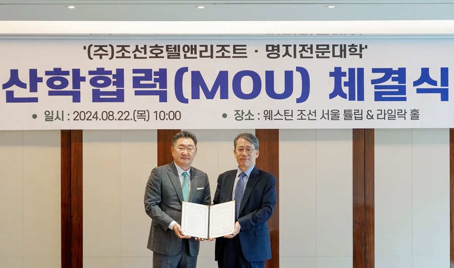 조선호텔앤리조트와 명지전문대학이 호스피탈리티 산업 전문 인력 양성을 위한 업무협약을 체결했다.