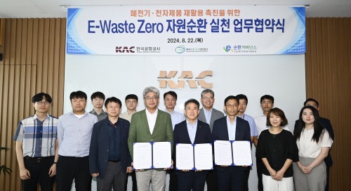 한국공항공사는 22일 E-순환거버넌스, 한국기후·환경네트워크*와 폐전기·전자제품의 재활용 활성화를 위한 업무협약을 체결했다.