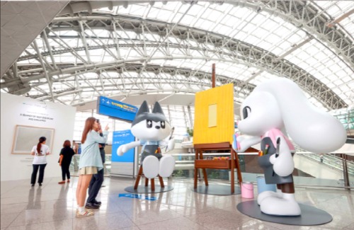 신세계면세점 캐릭터 폴앤바니가 한국 미술계의 거장 박서보 화백과 함께 인천국제공항으로 갔다.