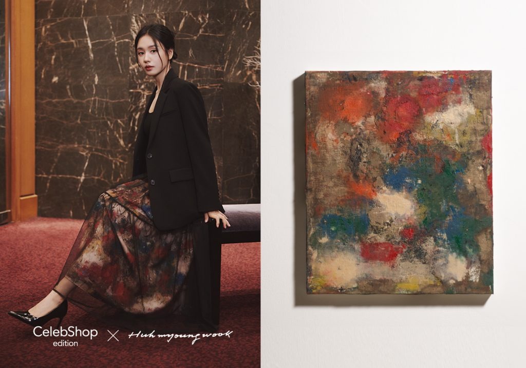 CJ온스타일이 컨템포러리 토탈 패션 브랜드 ‘셀렙샵 에디션’과 허명욱 작가가 컬래버레이션한 캡슐 컬렉션을 론칭한다. (왼쪽부터) 셀렙샵 에디션 허명욱 컬렉션 드로잉 샤 스커트, 허명욱 작가 드로잉 연작 중 「Untitled 2023 ottchil on canvas」