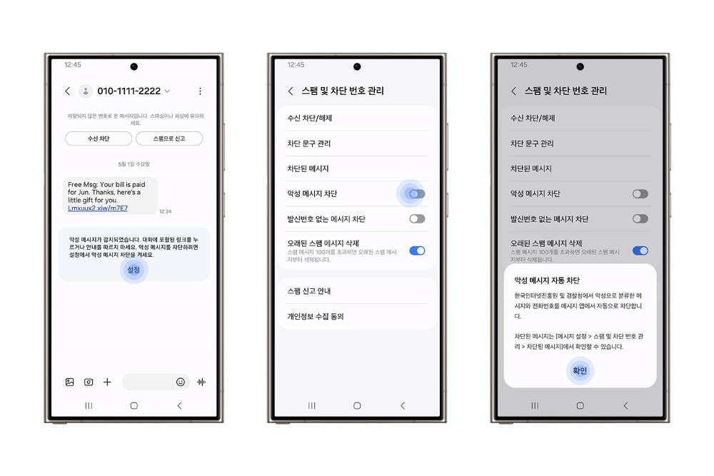삼성전자가 한국인터넷진흥원(KISA)과 협업해 ‘악성 메시지 차단 기능’을 개발하고, 9일부터 시작되는 메시지 앱 업데이트를 통해 국내 갤럭시 스마트폰에 적용한다.