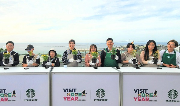 특히, 행사에 참여한 외국인 관광객들에게 한국방문의 해를 기념해 특별 제작한 스타벅스 텀블러를 전달하며 환영의 의미를 더했다. 아울러, 외국인 관광객과 함께 커피찌꺼기를 업사이클링한 커피박 화분에 환영을 뜻하는 수국, 백일홍 등의 모종을 심으며 친환경 여행 캠페인의 취지를 되새기는 시간을 가졌다.