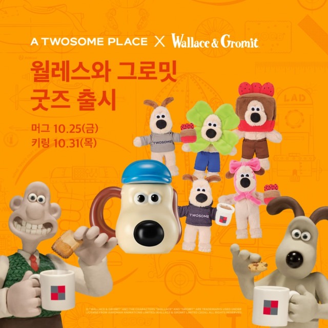프리미엄 디저트 카페 투썸플레이스가 영국의 대표적인 클레이 애니메이션 시리즈 ‘월레스와 그로밋’과 협업한 캐릭터 굿즈를 출시한다고 밝혔다.